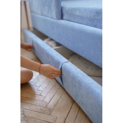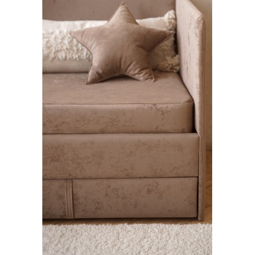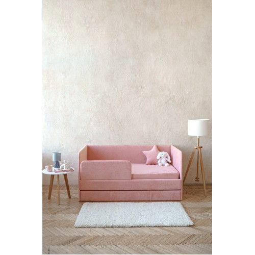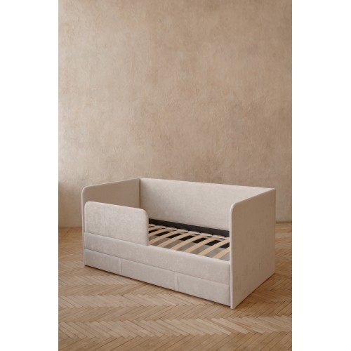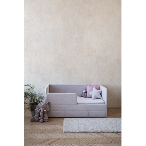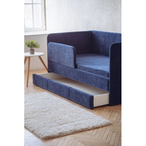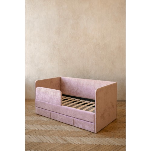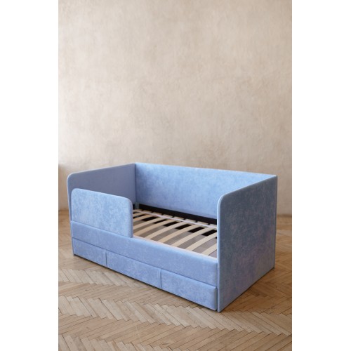 Кровать оборудована бортиком безопасности и большим вместительным ящиком, в котором будет удобно хранить игрушки или постельные принадлежности.