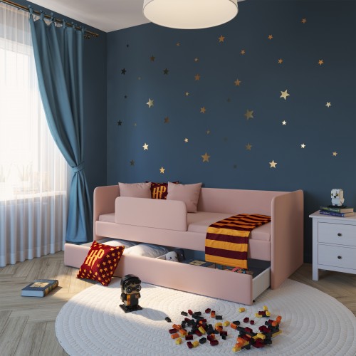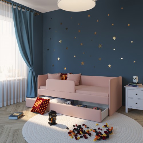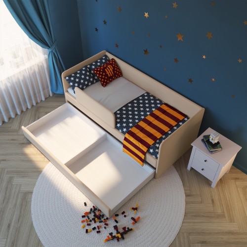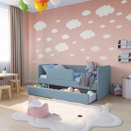 Jenny - идельное решение для вашего ребенка! Высокий ботик и мягкие боковины обеспечат надежную защиту от ударов, сквозняков и контакта с холодной стеной. Вместительный выкатной ящик поможет организовать пространство и хранить игрушки или постельное бельё.