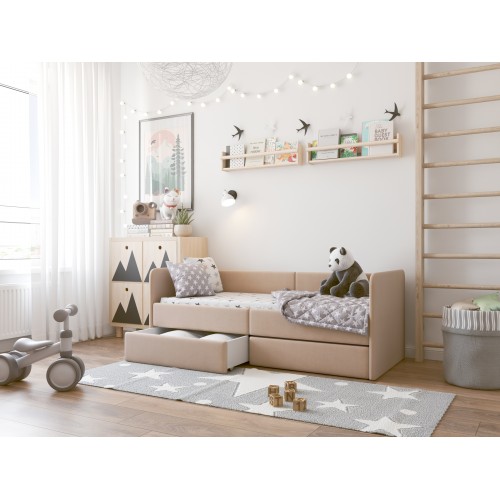 Подойдёт для детей от 2 лет - есть дополнительный защитный бортик для самых маленьких сонь.