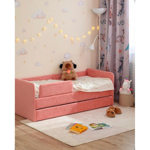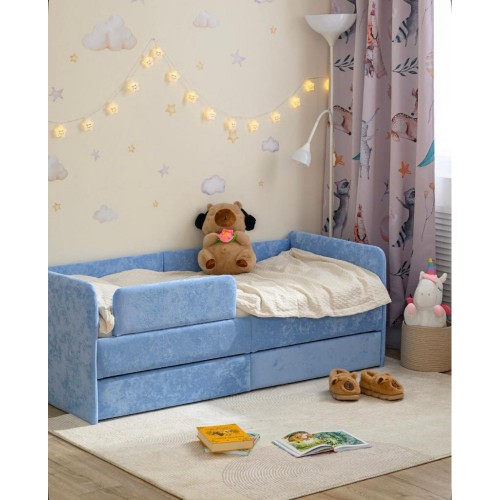 Подойдёт для детей от 2 лет - есть дополнительный защитный бортик для самых маленьких сонь.