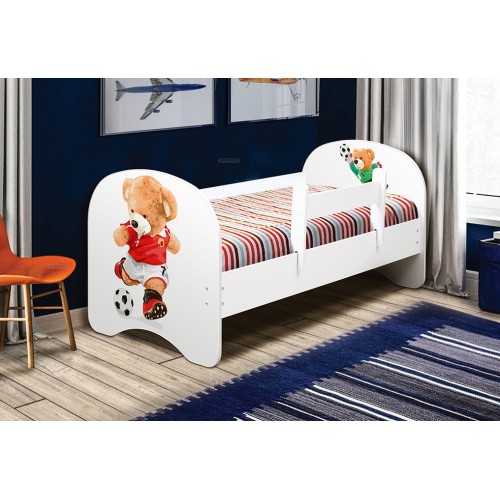 Детская кровать с изображением мишки-футболисиа. В такой компании совсем не скучно, интересно и тем более совсем не страшно спать.  Если вы хотите подарить ребенку не просто удобную, но и яркую кровать, то мы рекомендуем обратить внимание на данную модель с яркой фотопечатью. От такого подарка малыш будет в полном восторге.