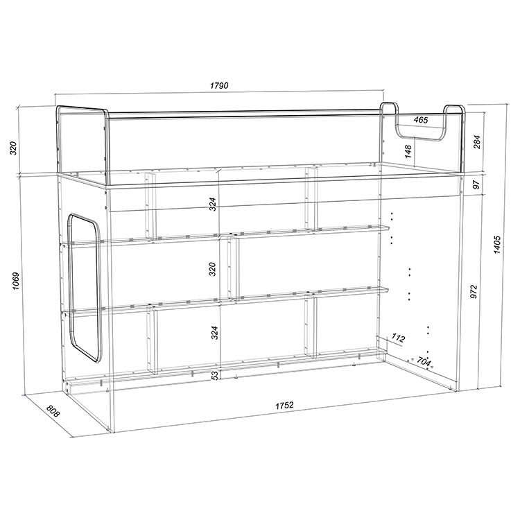 Размеры кроватки: 4020 * 808 * 1405 мм.