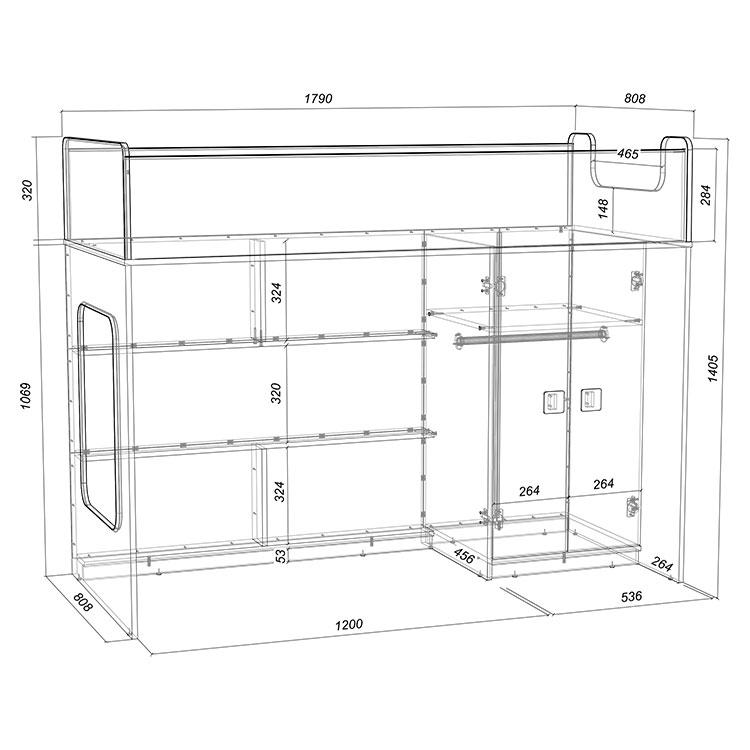 Размеры кроватки: 4020 * 808 * 1405 мм.