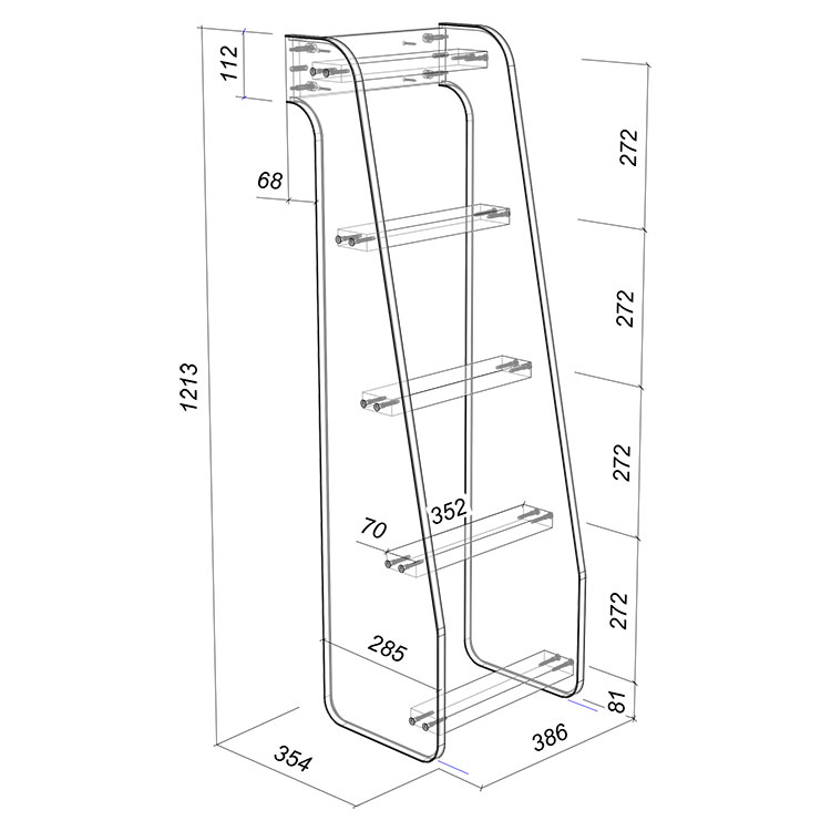 Стеллаж состоит из трех полок, 2 из которых разделены на две секции – удобно для поддержания порядка и сортировки предметов.