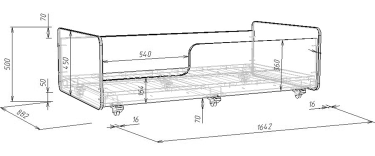 Благодаря увеличенным бортикам кровати подойдет матрас любой высоты. Специальный проём облегчает спуск с кровати.