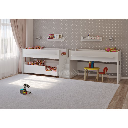 Практичные белые полочки Л-01 над каждой кроватью помогут организовать хранение полезных мелочей Вашего ребенка.