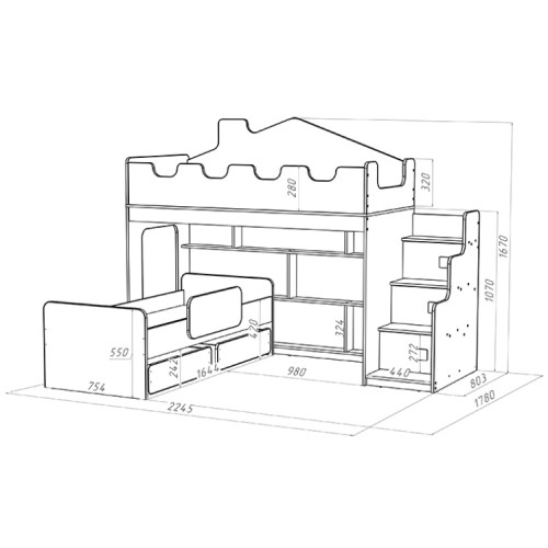 Размеры кроватки: 2245*1780*1670 мм