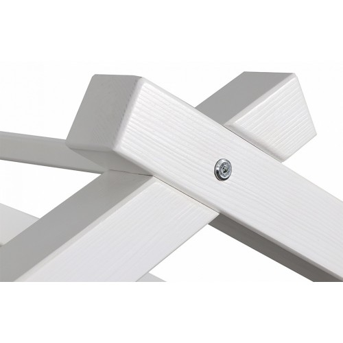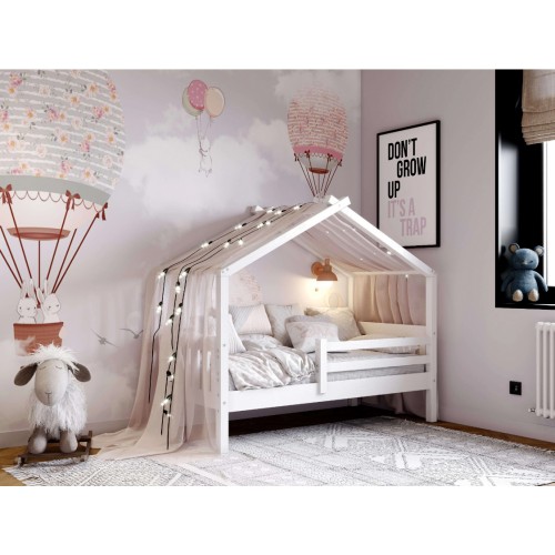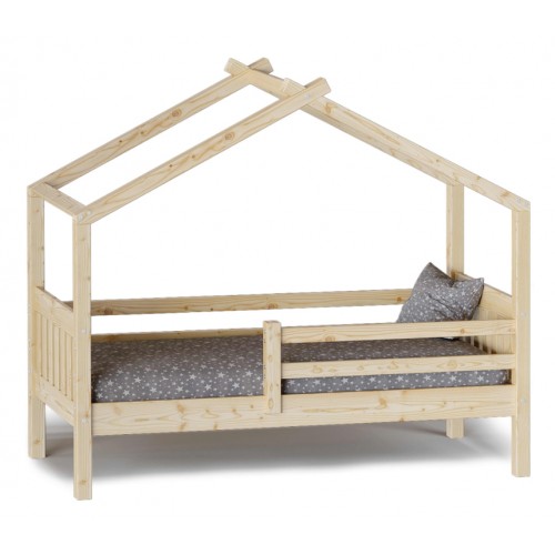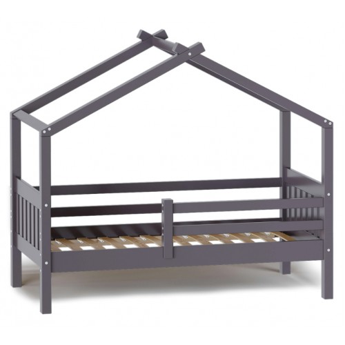 Каркас укомплектован основанием из поперечных гнутых ламелей. Головная и ножная спинки соединены стропилами, образующими крышу, благодаря чему малыш будет ощущать себя в собственном уютном домике. В комплектацию кровати входит ортопедическое основание из гнутоклееных ламелей.