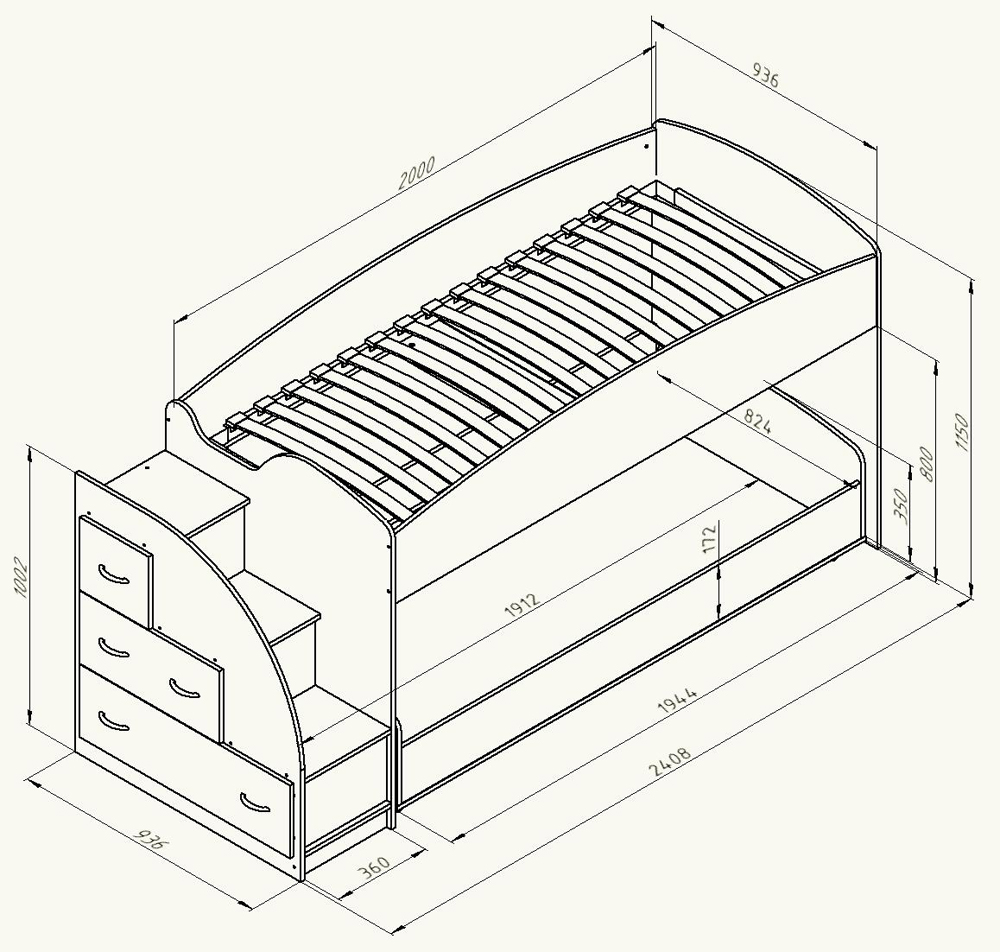 Размеры кроватки: 2408*936*1150 мм.