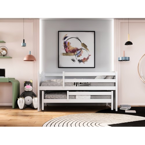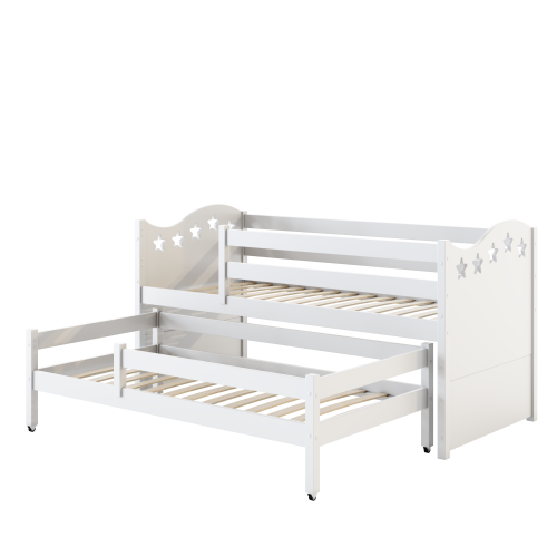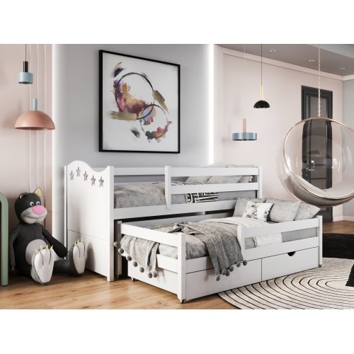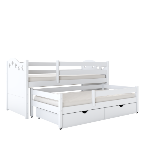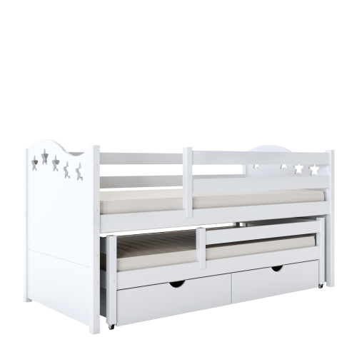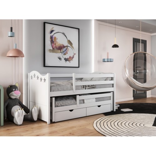 Кровать Star - оригинальное решение для семьи с двумя детьми. Кроватка выглядит стильно и аккуратно, не имеет острых углов, а компактный размер позволяет сэкономить пространство в детской комнате для активных, веселых игр.