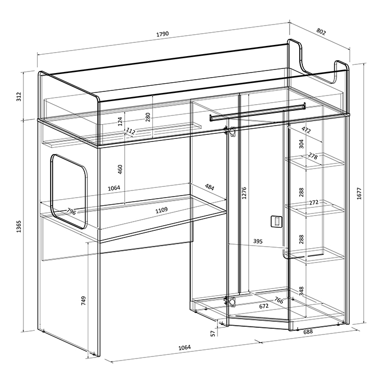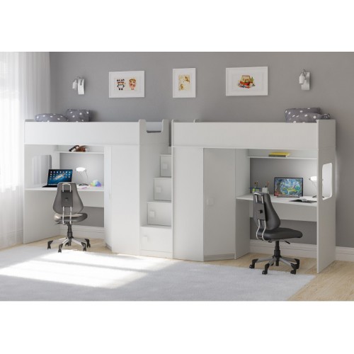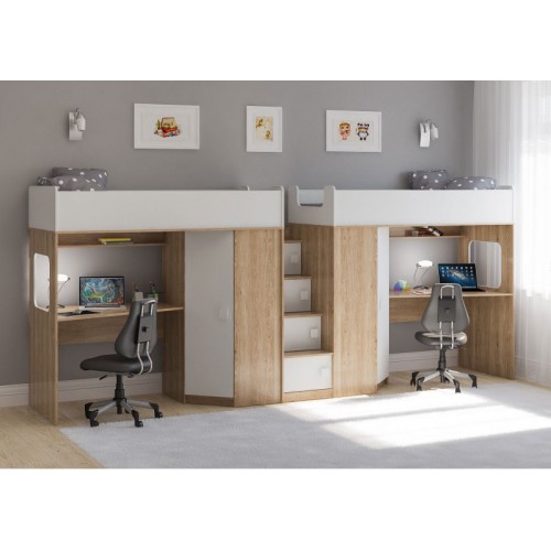 Под спальным местом для каждого ребенка располагается рабочее место с встроенным столом.