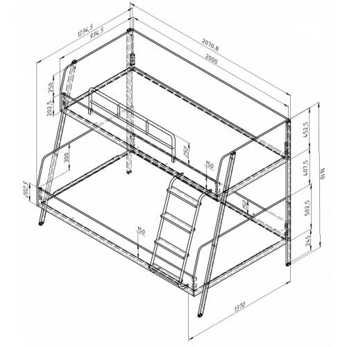 Размеры спальных мест: верхнее - 2000*900 мм., нижнее - 2000*1200 мм.