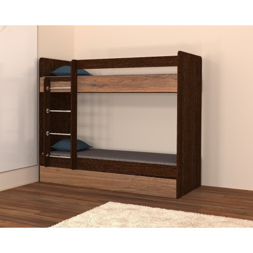 Удобная детская двухъярусная кровать  имеет классическую конструкцию и множество плюсов, которые позволят вам сделать правильный выбор: верхний ярус обустроен защитными бортиками для безопасности, закругленные углы боковых стоек устраняют травмоопасность, оптимальное расстояние между ярусами позволяет разместиться как детям, так и родителям сидя. Еще одним большим плюсом данной модели является отличное качество при доступной цене!
