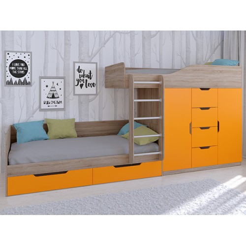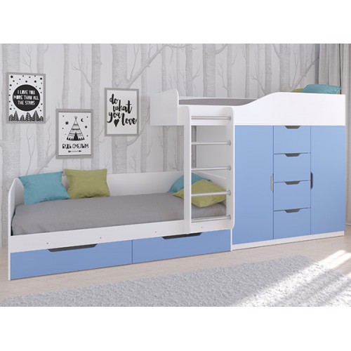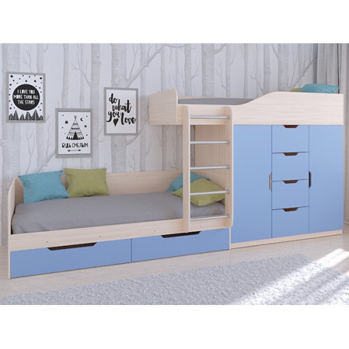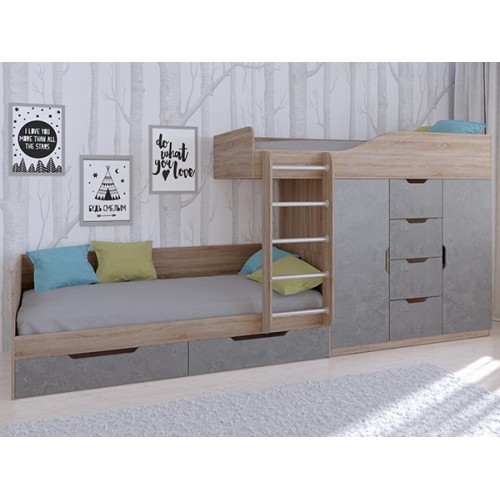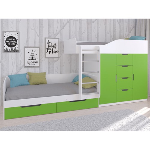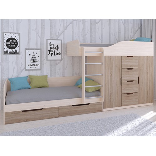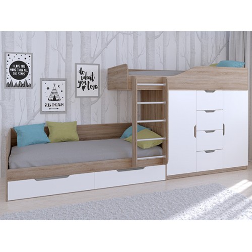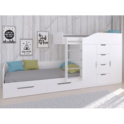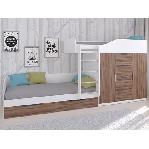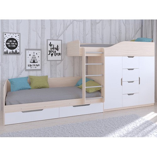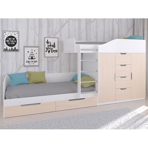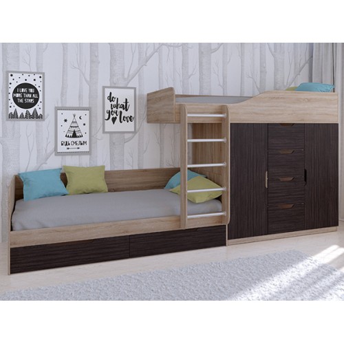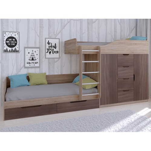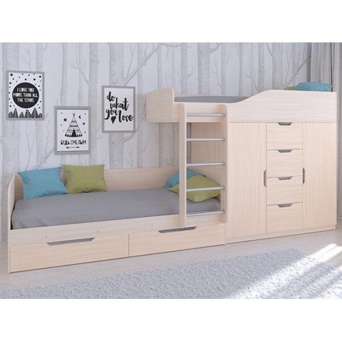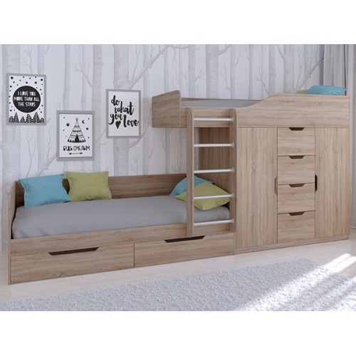 В составе модуля есть две удобные кровати: одна внизу, вторая на верхнем ярусе. Под нижним спальным местом располагается два выдвижных ящика для постельных принадлежностей. Под верхней кроватью продумана система хранения вещей и одежды, состоящая из четырёх выдвижных ящиков по центру и двух распашных шкафов: в одном есть полки, во втором — штанга для вешалок.